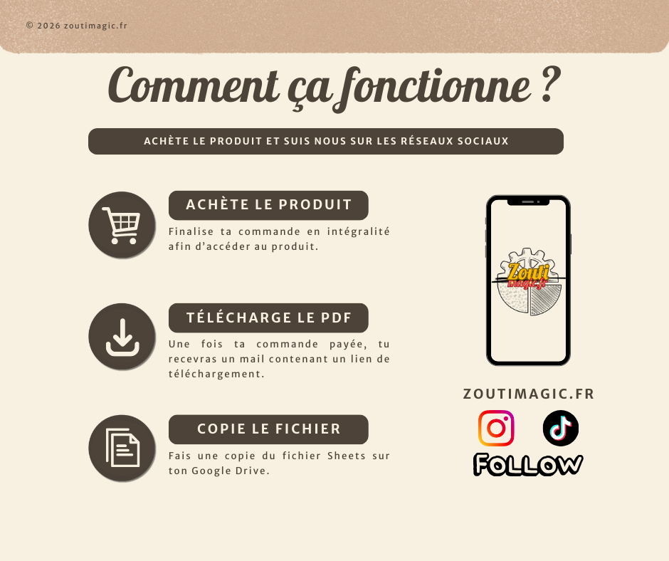 📄 Un fichier PDF contenant l’accès au modèle (Google Sheets uniquement)